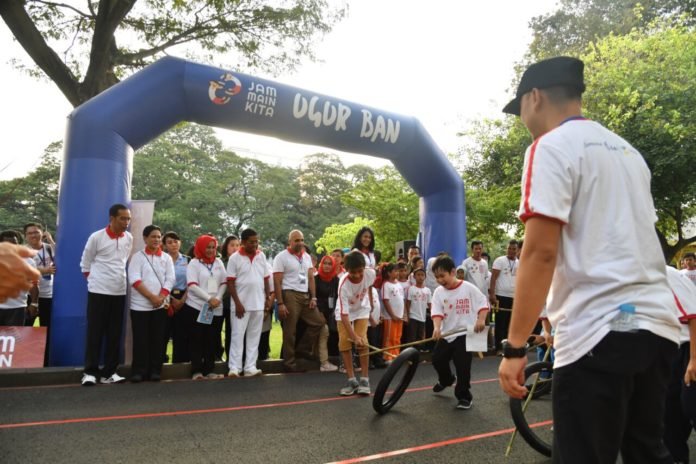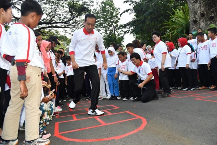 “Jangan lupa anak-anak kalau ada waktu baik sore hari, hari Sabtu atau Minggu, juga harus selalu bermain di luar ruangan. Jangan main handphone terus,” ujar Presiden.