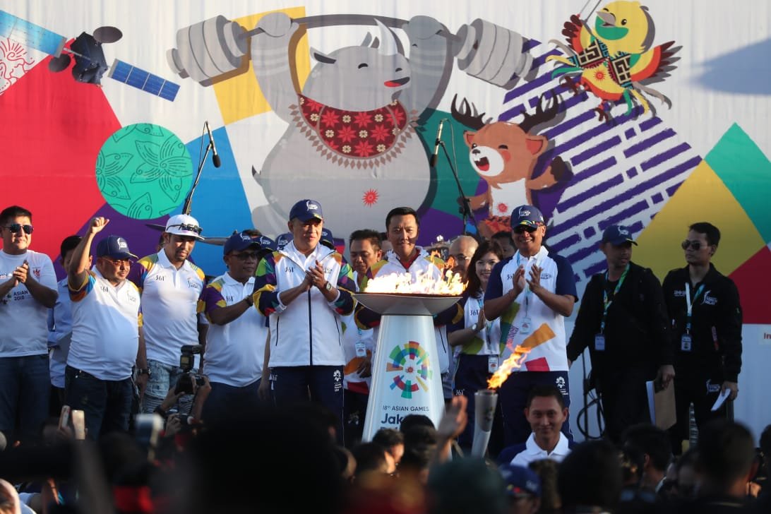 “Api obor Asian Games 2018 adalah bagian dari semangat untuk mendukung para atlet Indonesia yang akan berjuang meraih prestasi. Oleh karena itu, saya mengajak kepada semua masyarakat seluruh Indonesia untuk berpartisipasi mendukung suksesnya Asian Games pada 18 Agustus nanti,” kata Menpora. //PUT