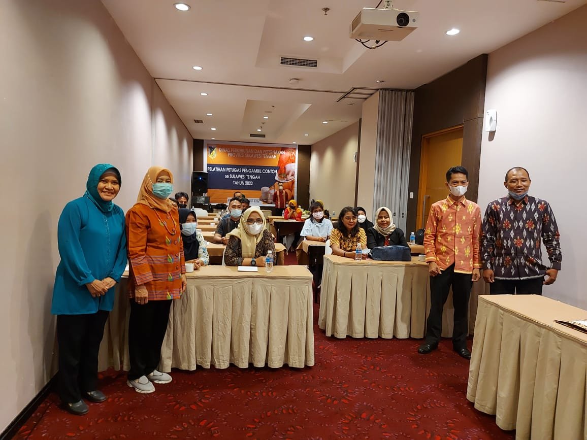 Dalam rangka meningkatkan kompetensi sumber daya manusia peternakan dalam melakukan pengujian bahanasal hewan di laboratorium, telah diselenggarakan Pelatihan Petugas Pengambil Contoh Se Sulawesi Tengah di Palu. Pelatihan dibuka oleh Kepala Bidang Kesehatan Hewan dan Kesehatan Masyarakat Veteriner, Ibu Dandi Alfita, S.Pt., MP. yang mewakili Kepala Dinas Perkebunan dan Peternakan Provinsi Sulawesi Tengah. Pelatihan berlangsung selama tigahari, mulai tanggal 20 s.d. 22 Maret 2022. Narasumber berasal dari Balai Besar Pelatihan Kesehatan Hewan(BBPKH) Cinagara dan fasilitator berasal dari Dinas Perkebunan dan Peternakan Provinsi Sulawesi Tengah.