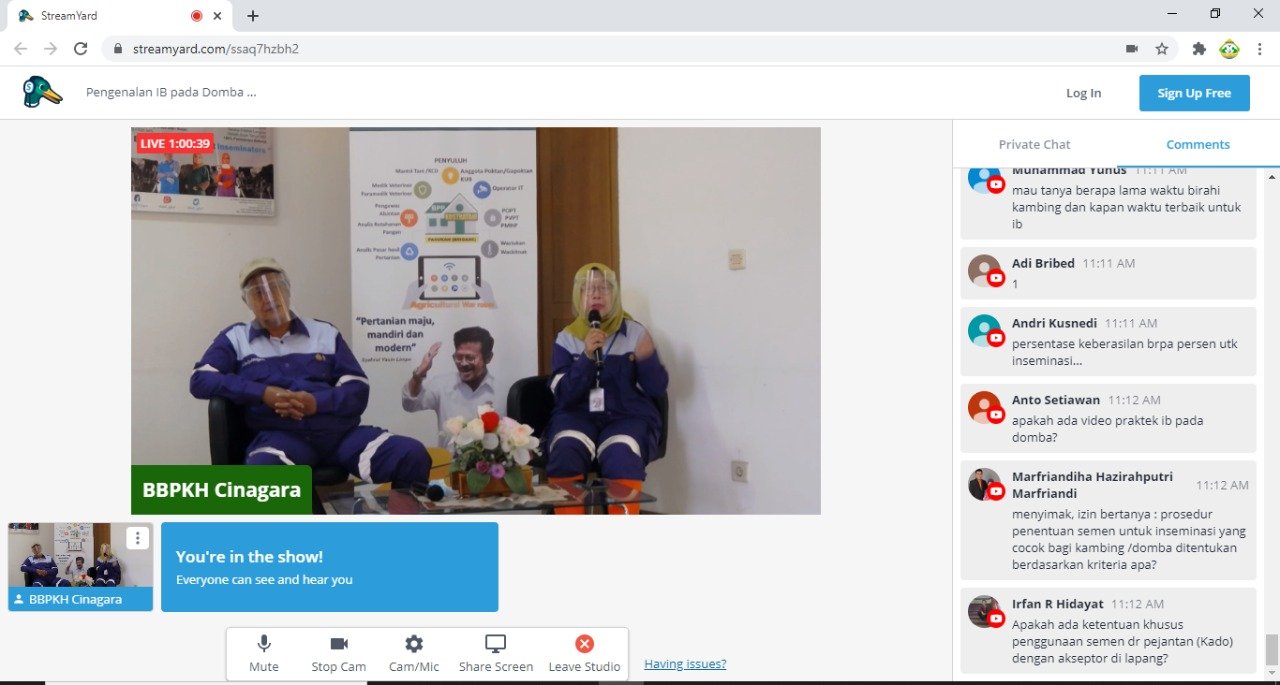 Balai Besar Pelatihan Kesehatan Hewan (BBPKH) Cinagara – Bogor pun mengambil peran dalam pelatihan di tengah pandemi dengan mengadakan webinar nasional secara gratis dan terbuka bagi masyarakat umum, Webinar ini dilaksanakan Senin, 27 Juli 2020. Pada Kegiatan ini BBPKH Cinagara menggandeng Halotani sebagai penyelenggara dengan topik pengenalan Inseminasi Buatan pada Kambing dan Domba. Webinar nasional pengenalan inseminasi kambing dan domba ini diikuti sebanyak 1167 peserta dari seluruh nusantara.