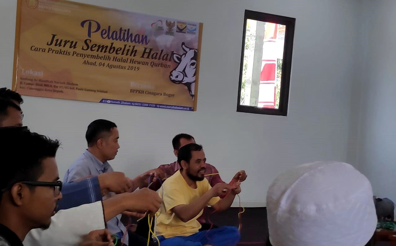 MARGOPOST.COM | Depok – DKM Nurul Zholam institute Depok melaksanakan Pelatihan Penyembelihan hewan qurban menggandeng Balai Besar Pelatihan Kesehatan Hewan(BBPKH) Cinagara. Idul qurban merupakan kegiatan penyembelihan hewan qurba di hari raya, dimana kegiatan berqurban ini memiliki tujuan dan manfaat untuk umat islam diantaranya dengan berqurban kita belajar untuk mensedekahkan harta yg kita miliki, menambah ketaatan kita kepada Alloh, mensucikan rezeki yg kita miliki meneladani kecintaan dan ketaatan kepada alloh SWT.