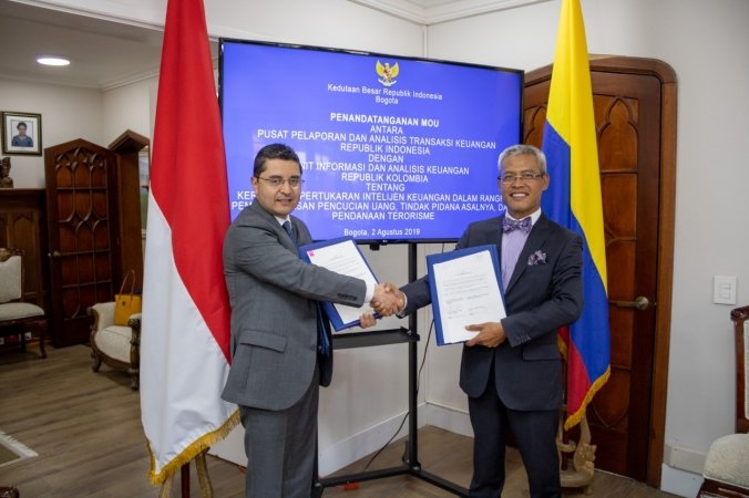MARGOPOST.COM | JAKARTA – Pusat Pelaporan dan Analisis Transaksi Keuangan (PPATK) Republik Indonesia menandatangani MoU kerja sama dengan Unit Informasi dan Analisis Keuangan Republik Kolombia di kantor Kedutaan Besar RI di Bogota, Kolombia, Jumat (2/8/2019).
