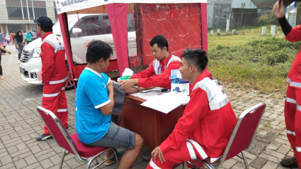 Diakuinya, dalam kegiatan tersebut pihaknya menerjunkan satu tenaga medis dibantu dengan tiga relawan PMI. Selain pertolongan pertama, pelayanan yang diberikan lainnya adalah cek kesehatan gratis dan fasilitas ambulans.