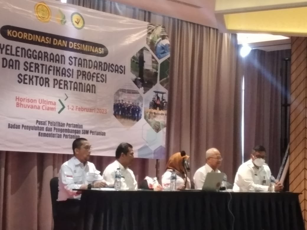 Kementerian Pertanian memiliki target untuk memenuhi kebutuhan pasar kerja global dengan melakukan sertifikasi kompetensi bidang sektor pertanian. Selaras dengan hal tersebut, di awal tahun 2023, BPSDMP Kementerian Pertanian melaksanakan kegiatan koordinasi dan diseminasi penyelenggaraan standarisasi dan sertifikasi profesi seKtor pertanian pada tanggal 1 sd 2 Februari 2023 yang dihadiri 112 peserta dan dihadiri juga oleh Sekretaris BPPSDMP kementan, Kapuslatan, Kepala Politeknik Enjiniring Pertanian Indonesia, Kepala UPT BPSDMP, Ketua BNSP, asesor dan master asesor. Kegiatan dilaksanakan di Hotel Horison Ultima Bhuvana