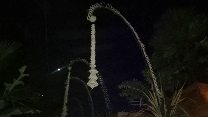 Penjor-penjor di jalan masuk Villa Omah Padi, Ubud, Gianyar, pernikahan Anggun C. Sasmi.
