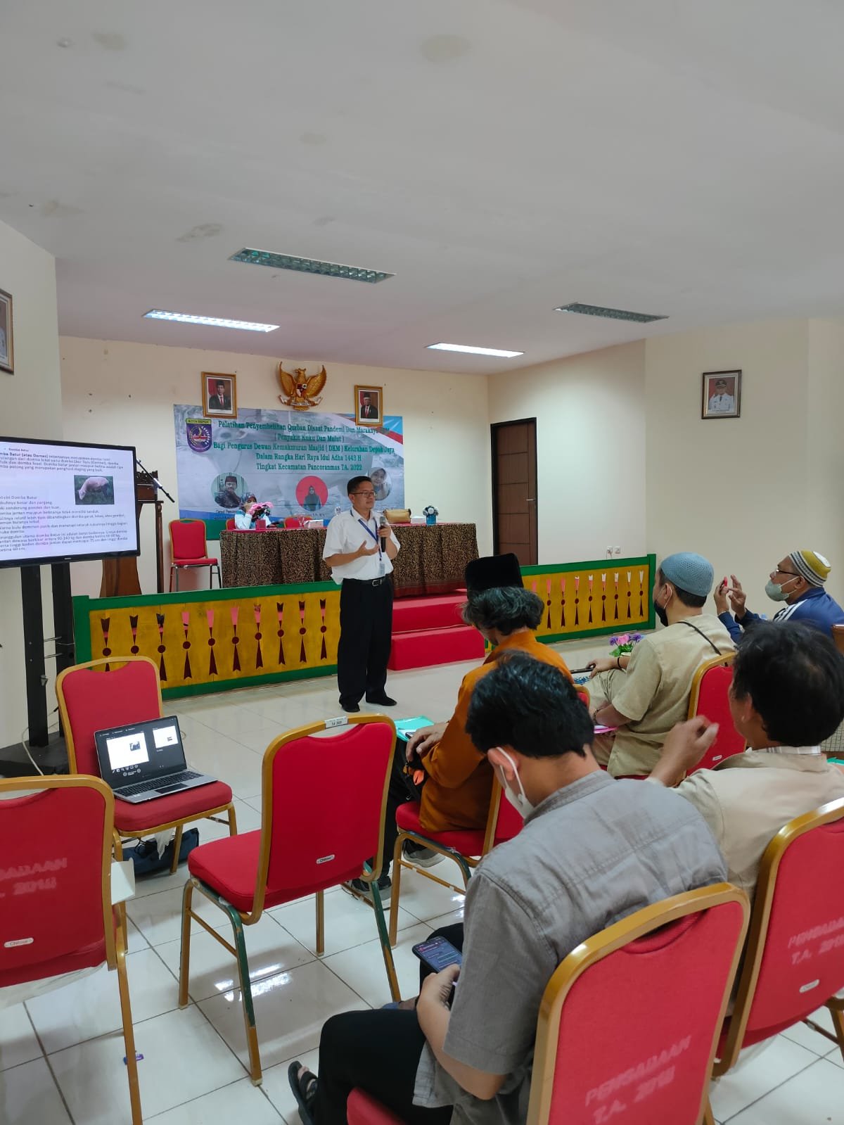 Dalam rangka menyambut idul qurban DKM (Dewan Kemakmuran Masjid) kecamatan pancoran mas kelurahan depok jaya meningkatkan kompetensinya dengan menghadirkan narasumber dari dinas ketahanan pangan pertanian dan kelautan kota depok, drh. Dede Zuraida selaku kepala bidang peternakan yang didampingi oleh ibu Ria Kartika Dwiyadi, S. Pt dengan materi yang disampaikan sosialisasi surat edaran walikota depok mengenai pelaksanaan qurban dan pemotongan hewan dalam situasi wabah penyakit mulut dan kuku serta perkembangan PMK dikota depok dan tindakan antisipasi pemerintah kota depok. Tim BBPKH cinagara juga digandeng sebagai narasumber yang terdiri dari ibu drh. Nafrina Lanniari, M. Si; Wilmy Rahmah Wirondas, S.Pt., MP; Yuniawan, S. Pt., M.Sc; dengan materi teknik penyembelihan hewan qurban sampai ke cara perobohan hewan qurban, syarat-syarat hewan qurban hingga penanganan daging, jeroan serta pengemasan.