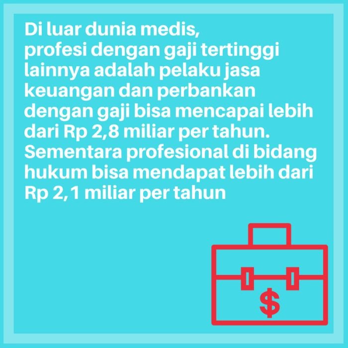 Dokter bedah berada di peringkat pertama sebagai profesi dengan gaji terbesar di Australia, dengan gaji per tahun mencapai lebih dari AU$ 393 ribu, atau lebih dari Rp 4 miliar per tahun. Angka ini belum termasuk dengan potongan pajak dan dana pensiun.