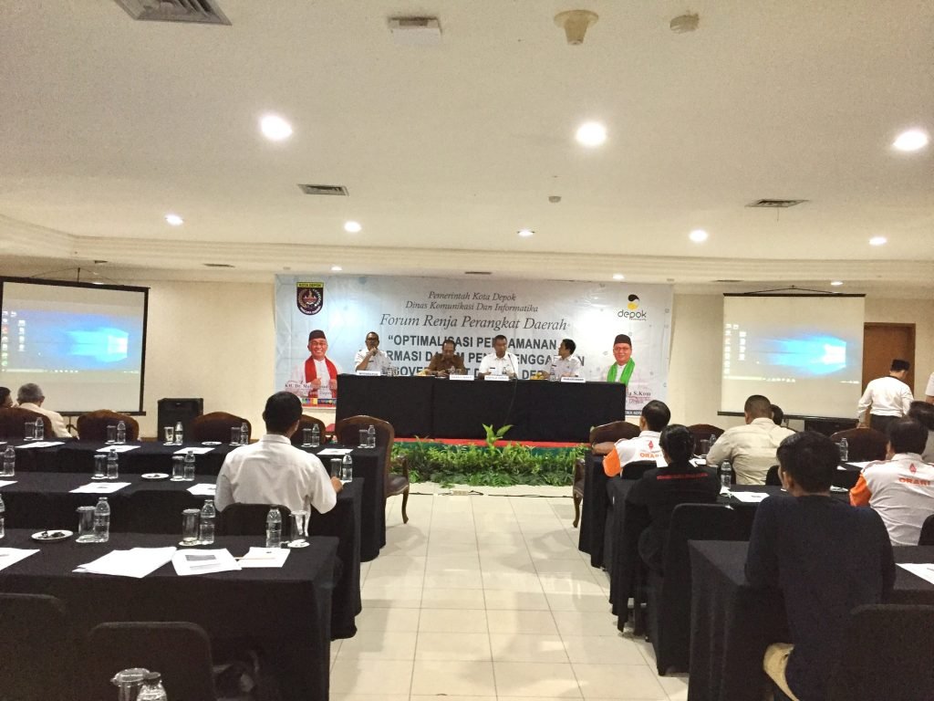 MARGOPOST.COM | DEPOK -Dinas Komunikasi dan informatika (Diskominfo) kota Depok gelar Forum Rencana Kerja (Renja) dengan tema “Optimalisasi pengamanan informasi dalam penyelenggaraan E-government di Kota Depok” pada hari Rabu (20/02/2019) di hotel Bumi Wiyata, Jl. Margonda Depok.