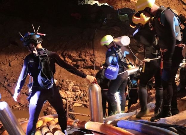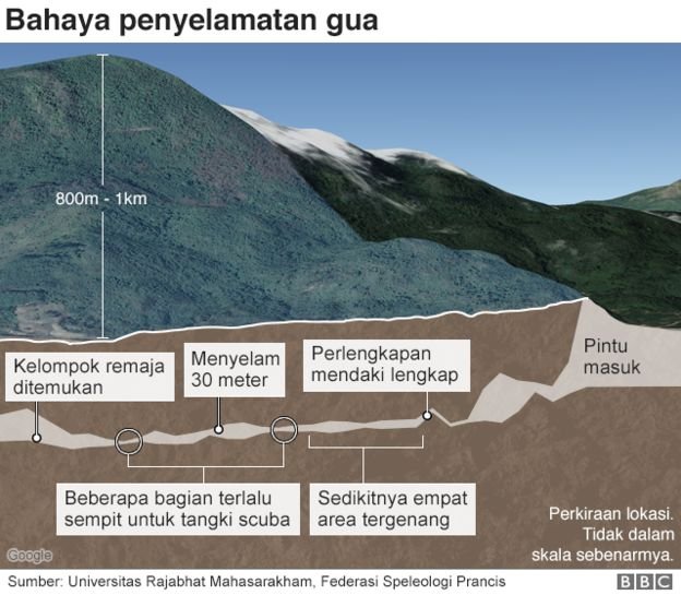 Sebanyak 19 penyelam masuk ke gua tersebut dalam misi berbahaya untuk menyelamatkan lima orang terakhir yang masih terperangkap banjir.