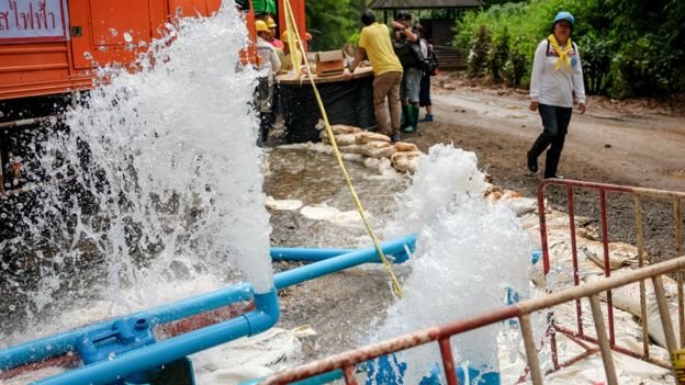 Selagi operasi penyelamatan berlangsung, mesin pompa terus bekerja guna mengurangi banjir di dalam gua, sebut Gubernur Provinsi Chiang Rai, Narongsak Osottanakorn.