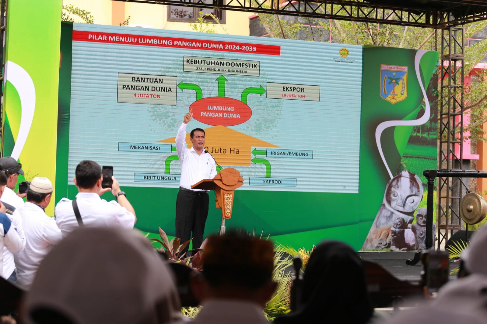 Bersamaan, Gubernur Provinsi Sulawesi Tengah, Rusdy Mastura mengucapkan terimakasih kepada Mentan Amran atas kehadirannya untuk membuka Jambore Penyuluh Pertanian Tahun 2023. Sejak pasca Gempa pada 2018 yang lalu, Provinsi Sulawesi Tengah terus berbenah diri dan bangkit serta terus berupaya untuk melaksanakan kegiatan even Nasional untuk mempromosikan budaya wisata Sulawesi Tengah sebagai negeri 1.000 megalit.