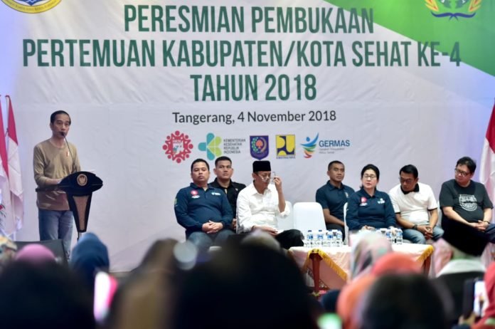 Oleh karena itu, Presiden Joko Widodo menyambut baik Pertemuan Kabupaten/Kota Sehat Ke-4 Tahun 2018 yang digelar di Aula Kantor Wali Kota Tangerang, Minggu, 4 November 2018. Menurutnya, gerakan hidup sehat masyarakat harus terus didorong.
