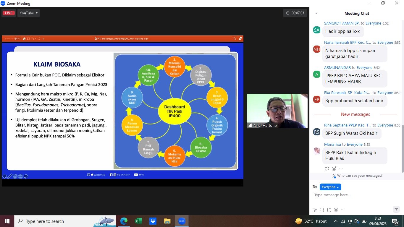 Hadir narasumber dari Balai Pengujian Standar Instrumen Tanah dan Pupuk pada Balai Standarisasi Instrumen Pertanian [BSIP] Kementerian Pertanian RI dan akademisi IPB University, Dr Arif Hartono.