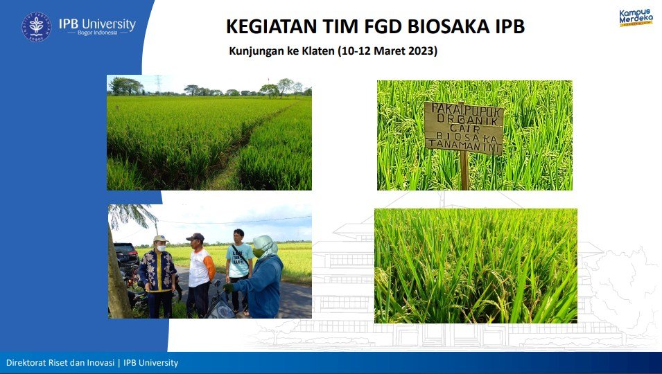 Sebagaimana diketahui, IPB membentuk Tim Kajian Biosaka IPB beranggotakan 10 akademisi yang dipimpin Prof Dr Ir Mitfahudin MSi dari dari hasil kajian lapangan di tiga kabupaten meliputi Karawang, Klaten dan Blitar pada medio Februari dan awal Maret 2023.