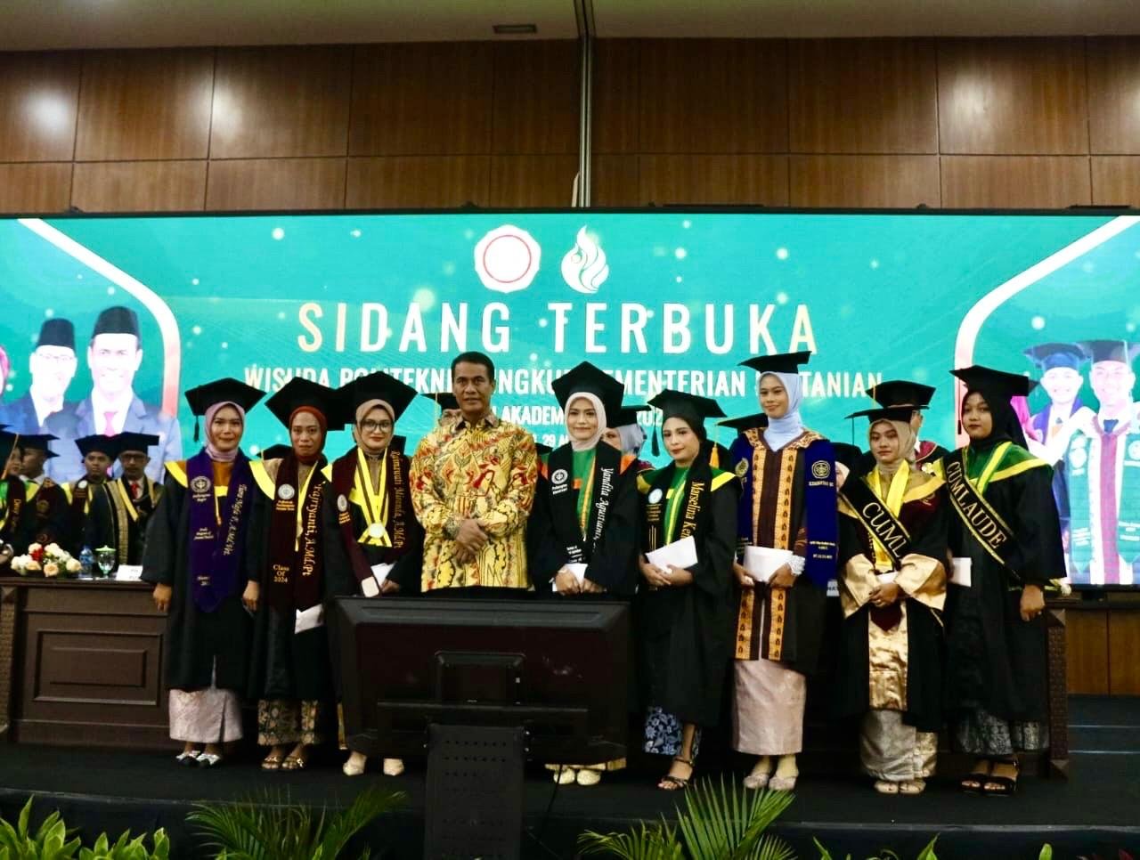 Sementara itu, Kepala Badan Penyuluhan dan Pengembangan SDM Pertanian (BPPSDMP) Idha Widi Arsanti, turut hadir memberikan dorongan semangat kepada para wisudawan.