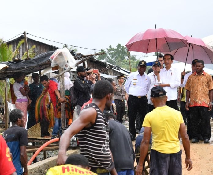 Turut mendampingi Presiden, Menteri PU dan Perumahan Rakyat Basuki Hadimuljono dan Gubernur Papua Barat Dominggus Mandacan.