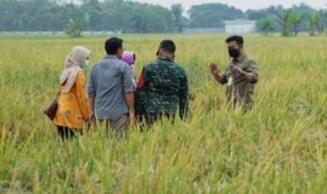 Di bawah guyuran hujan dengan berpayung merah, Presiden meninjau pembangunan jalan lingkungan yang mempekerjakan tenaga setempat sebanyak 30 orang. Selama menjalankan pekerjaan pembangunan tersebut, mereka menerima upah sebesar Rp100 ribu hingga Rp150 ribu per harinya.