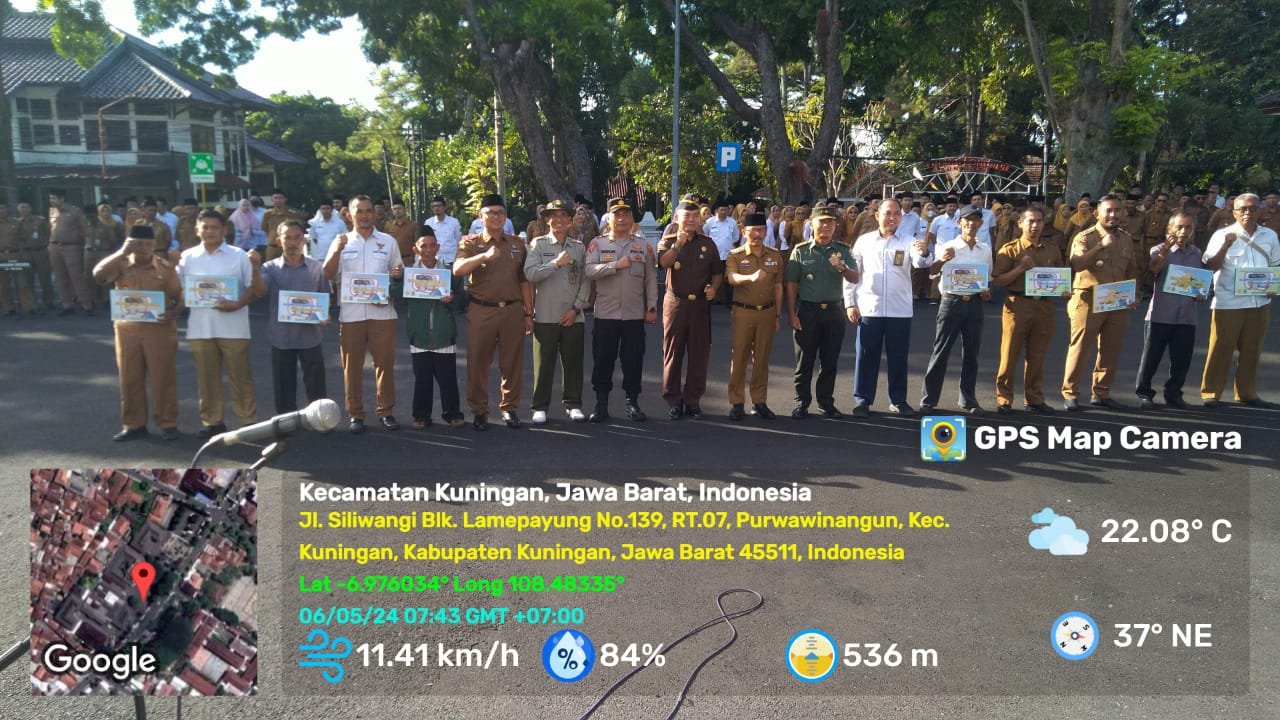 Secara resmi Pj. Bupati Kuningan Iip Hidajat memimpin apel pagi Senin (06/05/2024) sekaligus menyampaikan bantuan 10 unit pompa air kepada masing-masing ketua kelompok.