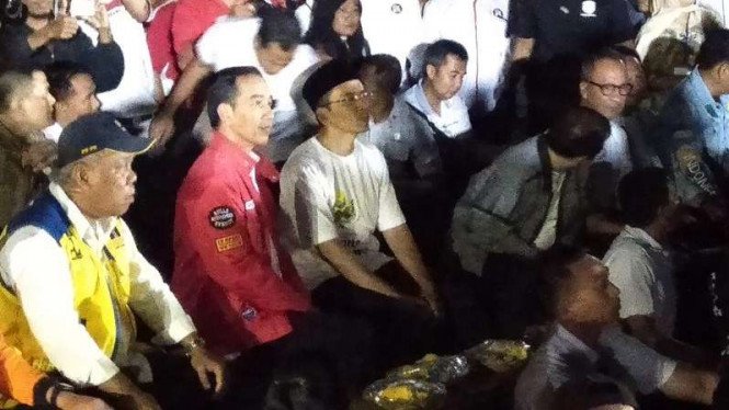 Jokowi dari tenda penginapannya datang dan menghampiri pengungsi. Suasana berubah riuh saat pengungsi meneriaki nama Jokowi. Terlihat, Jokowi melambaikan tangan ke arah warga dan berbaur menyaksikan penutupan Asian Games 2019 bersama warga.