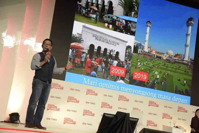 “Syarat negara adidaya, tugas Anda semua (milenial) jaga ekonomi kita lima persen sampai 2045, salah satunya dengan ekonomi digital,” kata Emil, sapaan akrab Ridwan Kamil saat menjadi pembicara dalam Indonesia Millennial Summit 2019 di Grand Ballroom Hotel Indonesia Kempinski, Jakarta, Sabtu (19/1/19).