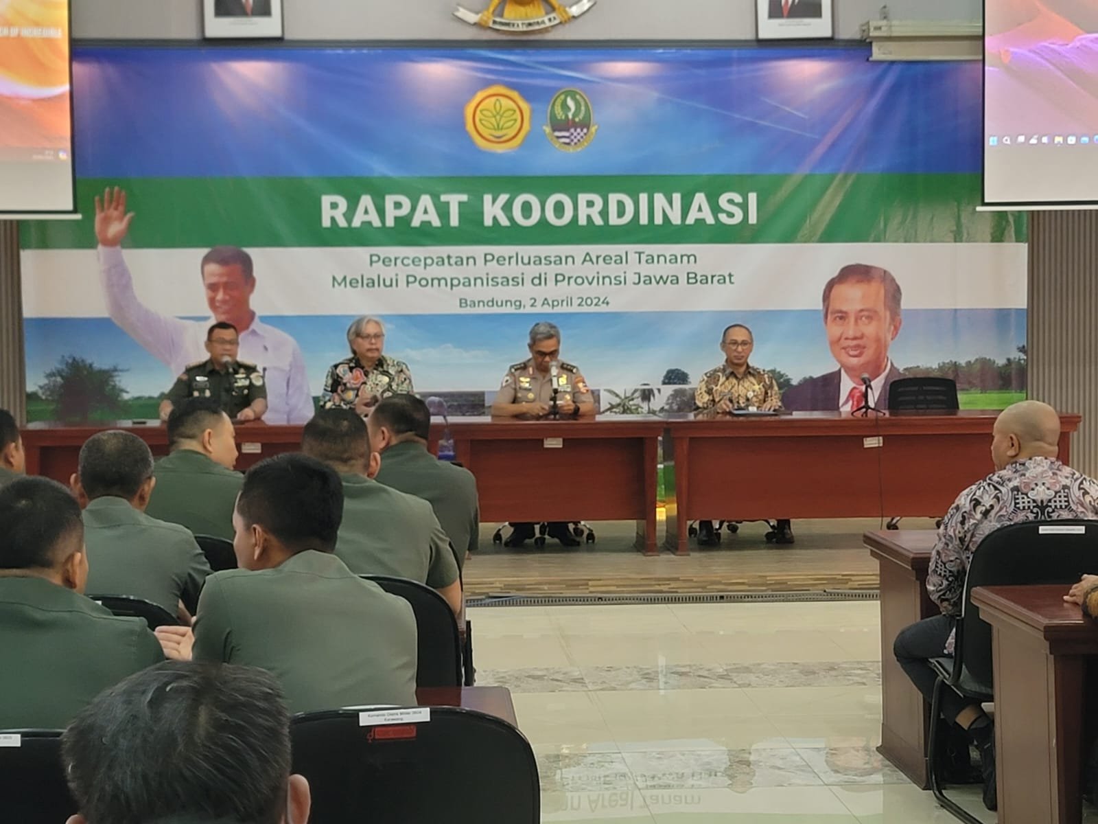Rakor digelar di Dinas Tanaman Pangan dan Hortikultura Provinsi Jawa Barat di Coblong, Kota Bandung, Jawa Barat pada Selasa (02/04/2024) ini, membahas Penandatanganan perjanjian kerja sama (PKS) perluasan area tanam padi melalui pompanisasi antara Kepala Dinas Kabupaten/Kota dengan KODIM Lingkup Provinsi Jawa Barat. Serta Bimbingan teknis sistem pelaporan PAT pompanisasi.