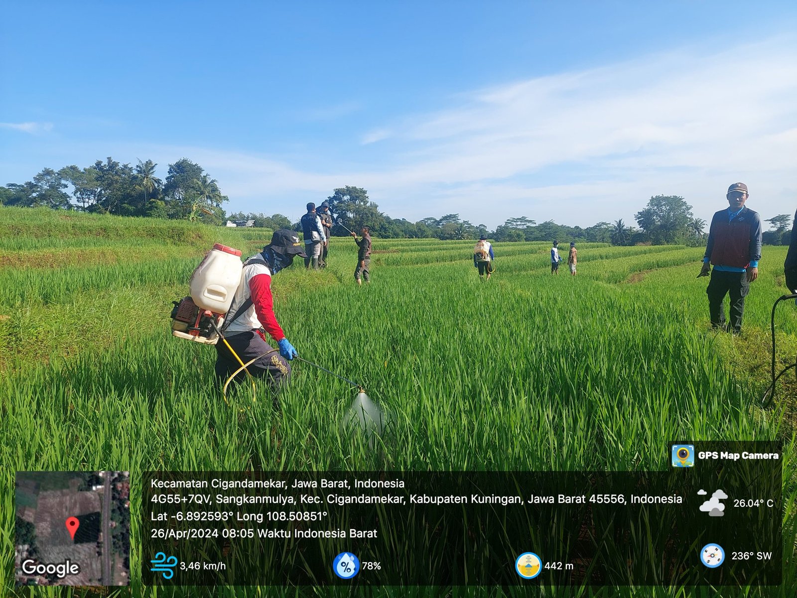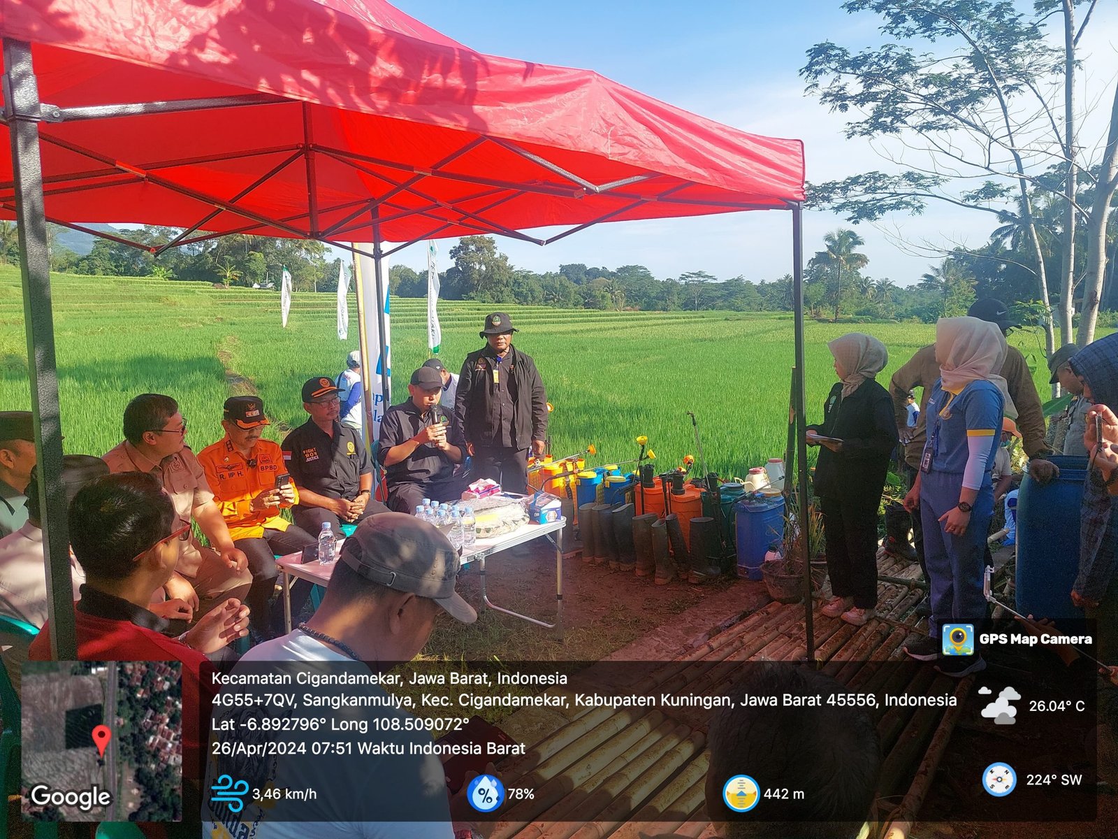 Kegiatan dilaksanakan di wilayah Poktan Mulyajaya, Desa Sangkanmulya, Kecamatan Cigandamekar, Kabupaten Kuningan, Provinsi Jawa Barat dengan luas areal sawah 10 Ha. Kegiatan dihadiri oleh Pj. Bupati Kuningan, Ketua DPRD, Dandim 0615, Kapolres, BBPKH Cinagara selaku Penanggung Jawab Antisipasi Darurat Pangan Kabupaten Kuningan, Direktur Perlindungan Tanaman, Ditjen TP Kementan serta instansi dan lembaga lain lingkup Kabupaten Kuningan.