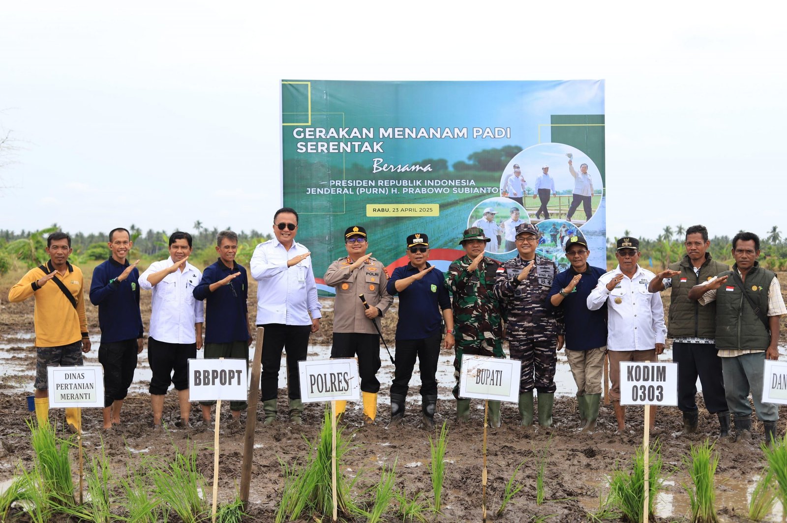 MARGOPOST.COM | KEPULAUAN MERANTI – Dalam rangka mendukung program nasional ketahanan pangan yang tengah digalakkan pemerintah untuk menghadapi tantangan global di sektor pertanian. Bersamaan dengan dilangsungkannya Gerakan Tanam Serentak di 14 provinsi yang berpusat di Ogan Ilir Sumatera Selatan serta dipimpin langsung oleh Presiden Prabowo. Kementerian Pertanian (Kementan) terus mengawal gerakan tanam padi di Provinsi Riau, Rabu (23/04/2025) yang dilaksanakan di 20 Ha areal pesawahan Desa Mekar Baru, Kecamatan Rangsang Barat, Kabupaten Kepulauan Meranti.
