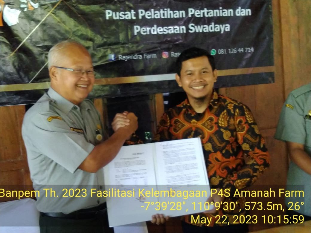 Balai Besar Pelatihan Kesehatan Hewan (BBPKH) Cinagara selaku UPT Pelatihan yang membina P4S wilayah Provinsi Daerah Istimewa Yogyakarta dan Banten, pada hari Senin, 22 Mei 2023 melaksanakan distribusi bantuan pemerintah tahun anggaran 2023 kepada 5 (lima) lembaga P4S terpilih wilayah Provinsi D.I.Yogyakarta yang tersebar kedalam 4 (empat) Kabupaten antara lain : 1) P4S Rajendra Farm, Kabupaten Kulon Progo; 2) P4S Tani Organik Merapi, Kabupaten Sleman; 3) P4S Bumi Kayangan Farm, Kabupaten Gunung Kidul; 4) P4S Amanah Farm, Kabupaten Bantul; dan 5) P4S Pasir Makmur, Kabupaten Bantul.