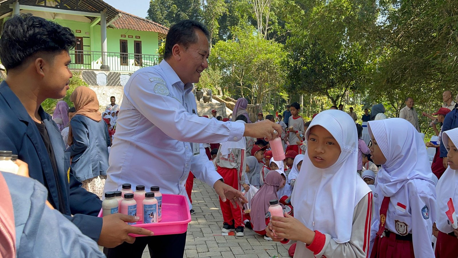 Kegiatan edukasi minum susu di laksanakan di SDN 03 Cinagara, Desa Pasir Buncir, Kecamatan Caringin, Kabupaten Bogor Selasa (03/09) dengan melibatkan 232 orang siswa dari kelas 1 sampai dengan kelas 6 dan 10 orang guru.