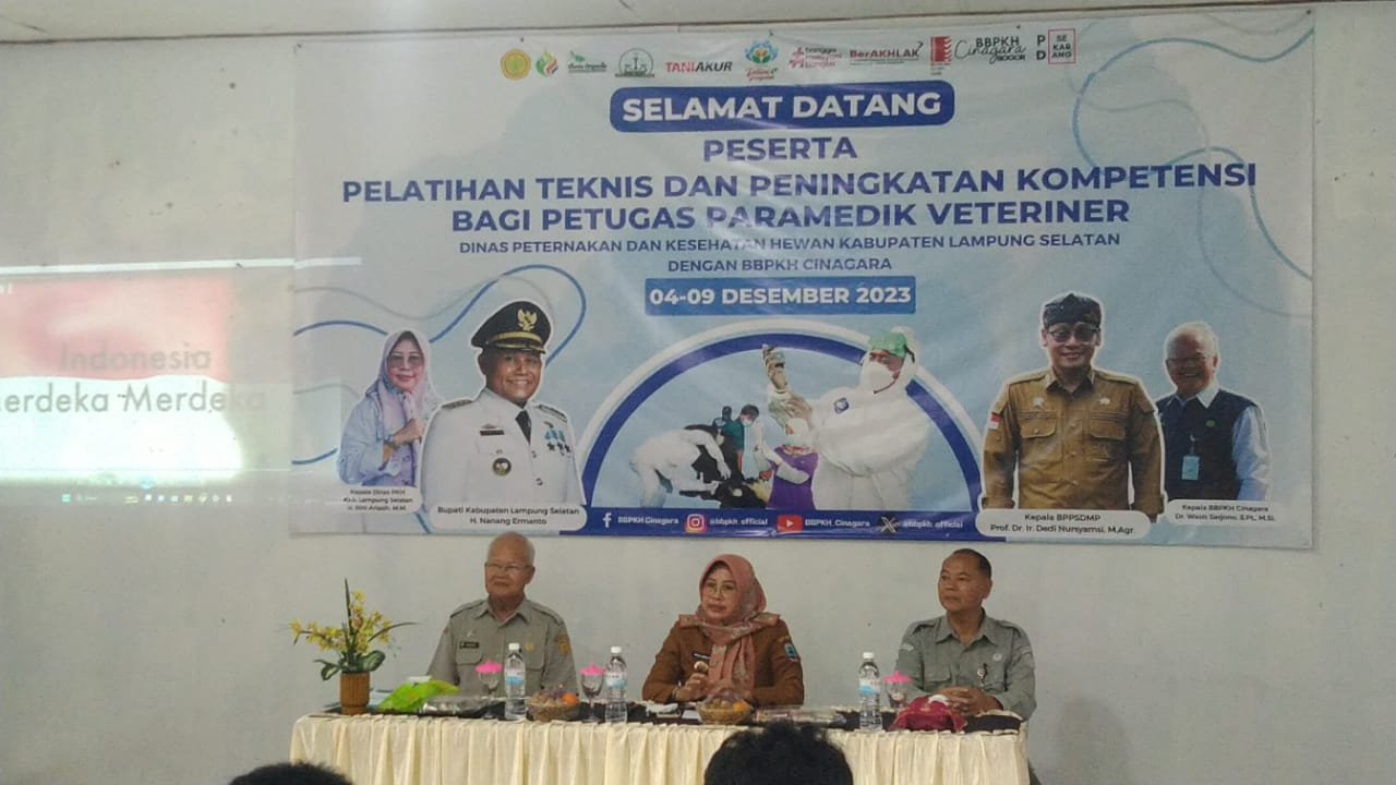 Berkaitan dengan hal tersebut BBPKH Cinagara bekerjasama dengan Dinas Peternakan dan Kesehatan Hewan Kabupaten Kalianda, Provinsi Lampung untuk menyelenggarakan Pelatihan Teknis Kesehatan Hewan yang dilaksanakan pada tanggal 04 s.d. 09 Desember 2023. Kegiatan dilaksanakan di Aula Dinas Peternakan dan Kesehatan Hewan. Peserta berjumlah 47 orang berasal dari 13 Kecamatan Wilayah Kabupaten Lampung Selatan.