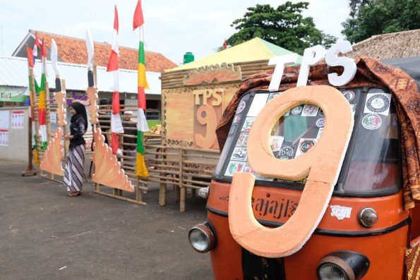 MARGOPOST.COM | DEPOK – Tempat Pemungutan Suara (TPS) 9 Pilgub Jawa Barat Tahun 2018 di RW 07 Kelurahan Sawangan menampilkan keunikan, diantaranya petugas KPPS yang menggunakan pakaian adat Sunda, ornamen dan hiasan bernuansa Sunda, penampilan musik tradisional, bilik suara khusus untuk penyandang disabilitas, serta disediakan hadiah untuk para warga yang menggunakan hak suaranya.