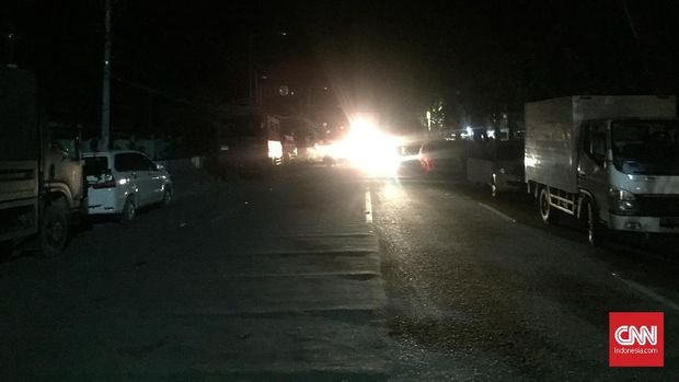 Korban Gempa Antre Pembagian Bantuan di Korem TadulakoKondisi Kota Palu masih gelap pascagempa. (CNN Indonesia/Patricia Diah Ayu Saraswati)