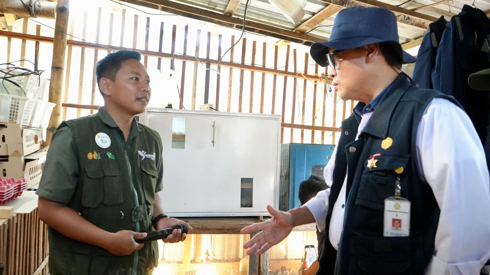 Saat kunjungan Dedi bertanya jawab secara langsung dilokasi kandang ayam Bangkir Farm, mulai dari awal mula Riski mengembangkan usahanya, macam produk dan dimana dipasarkan.