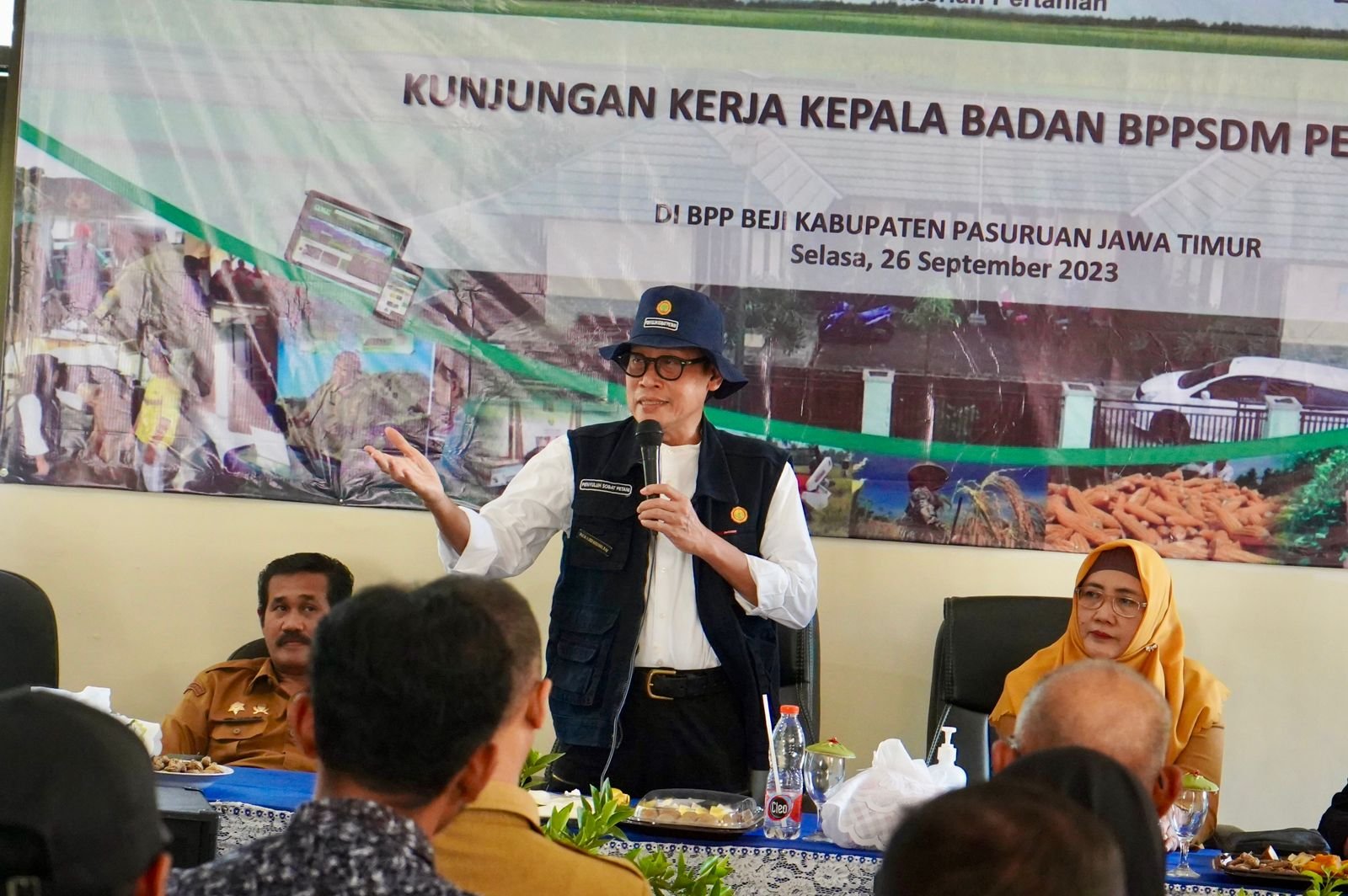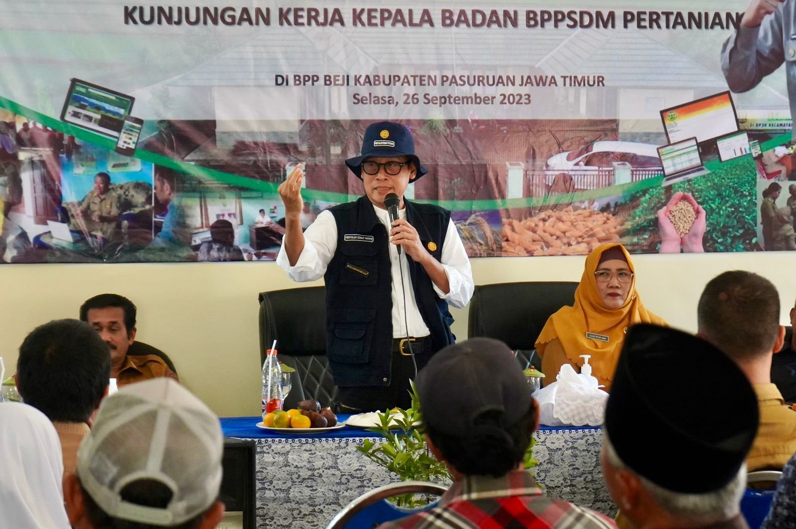 Hal tersebut disampaikan Kepala BPPSDMP saat melakukan kunjungan kerja ke Balai Penyuluhan Pertanian (BPP) Beji, Kabupaten Pasuruan, Jawa Timur, Selasa (26/9/2023).