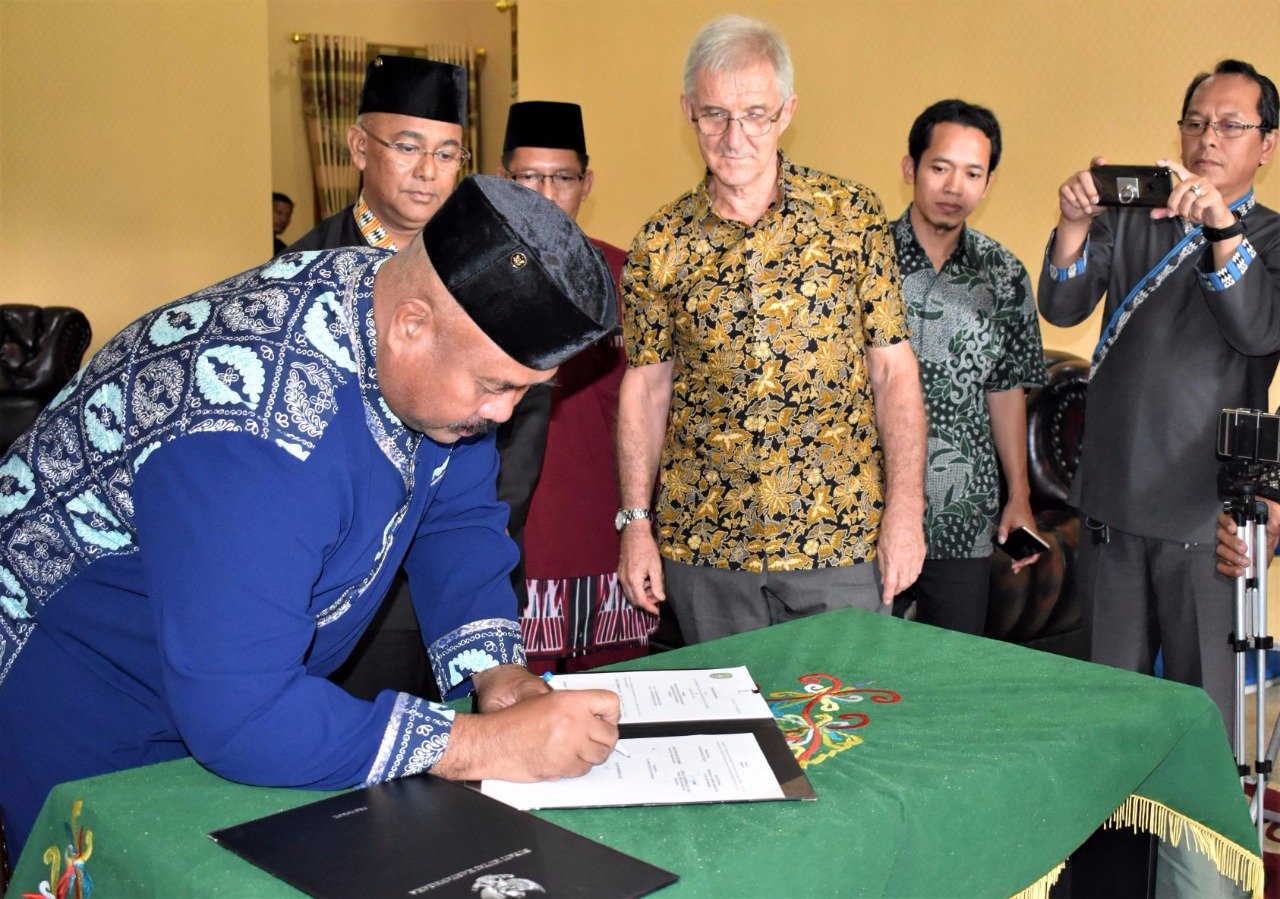 1. Drs. Edi Darmansyah, MSi, selaku PLT Bupati Kutai Kartanegara menandatangani MoU kerjasama Program Pelita Pendidikan dengan Tanoto Foundation disaksikan oleh Direktur Program Pelita Pendidikan, Stuart Weston, dan Kadis Pendidikan dan Kebudayaan Hifsi G Fachrannas (2/8/2018)