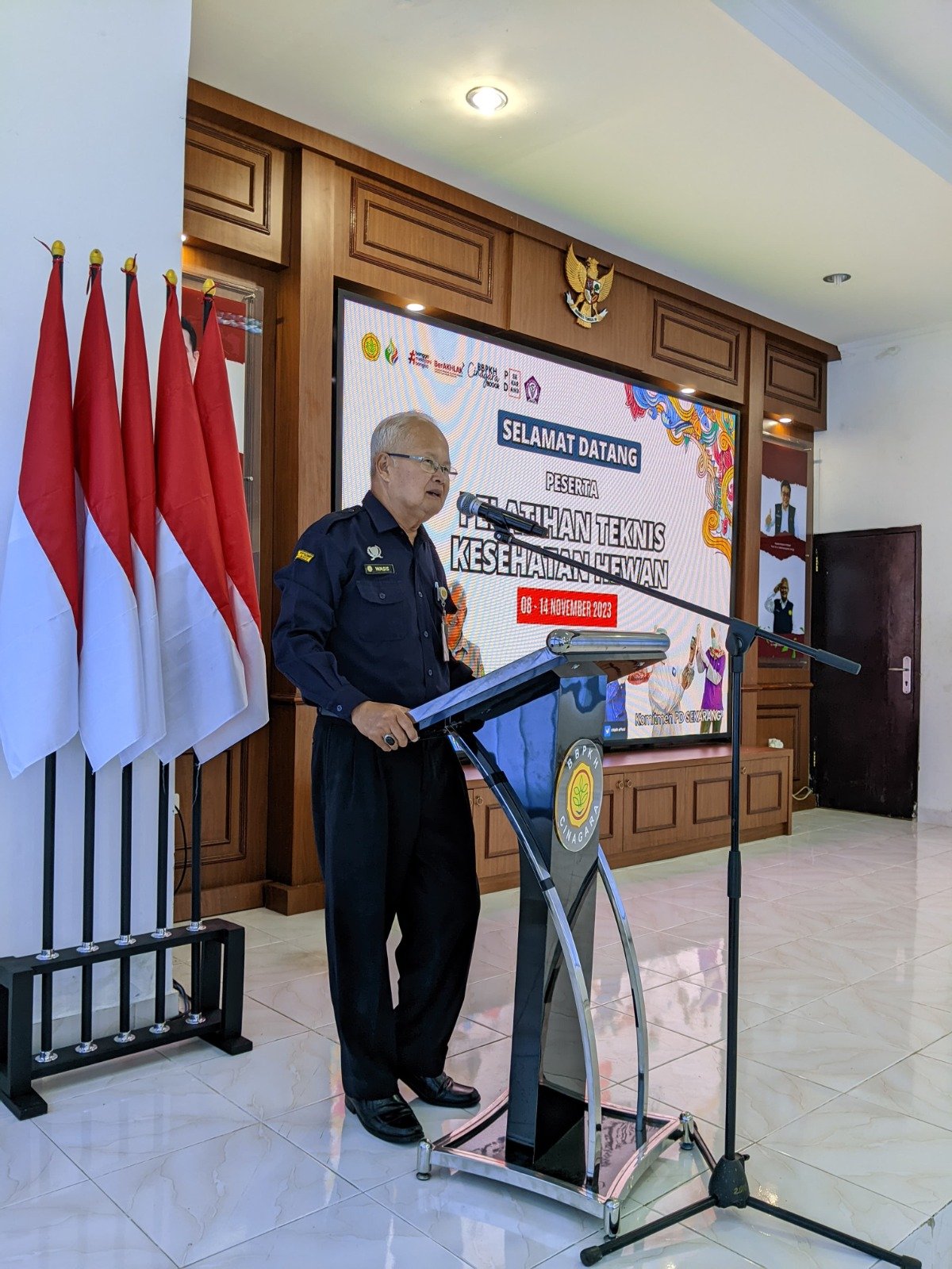 Seraya membuka pelatihan secara resmi, Kepala BBPKH Cinagara berpesan agar peserta tidak sungkan menyampaikan kritik dan saran kepada panitia untuk perbaikan pelayanan khususnya pelatihan di BBPKH Cinagara. [Humas BBPKH–09/11/2023].