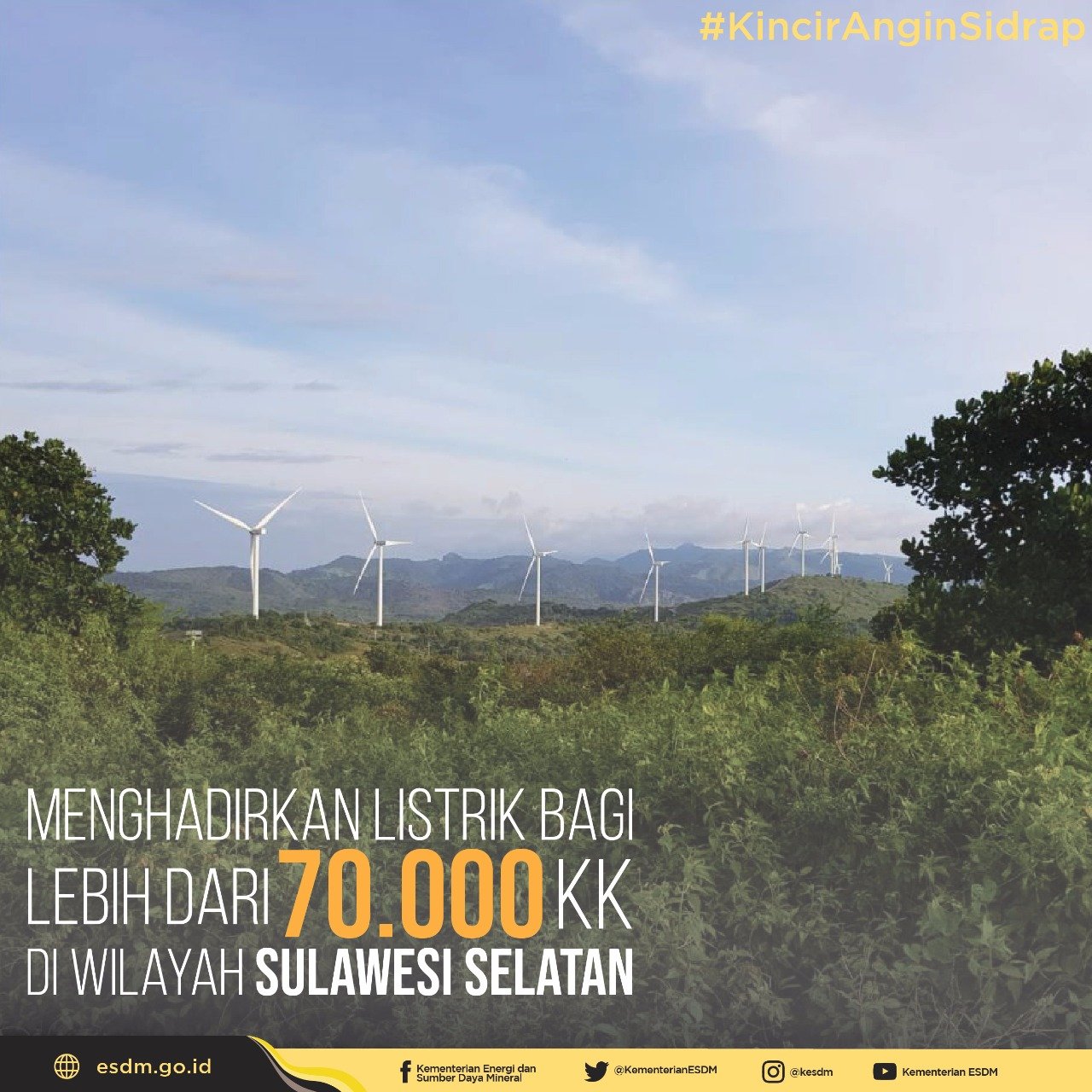 Menurut Presiden Jokowi, pembangkit listrik dengan energi baru terbarukan di Indonesia ke depan akan terus dikembangkan. “Seperti yang kita lihat pada sore ini pembangkit listrik tenaga bayu atau angin, tidak hanya di Kabupaten Sidrap saja tetapi sudah dikerjakan dan selesai 80% di PLTB Kabupaten Jeneponto. Selain itu juga dikerjakan di Kabupaten Tanah Laut dan akan dimulai segera di PLTB di Jawa Barat Kabupaten Sukabumi,” ungkap Presiden.