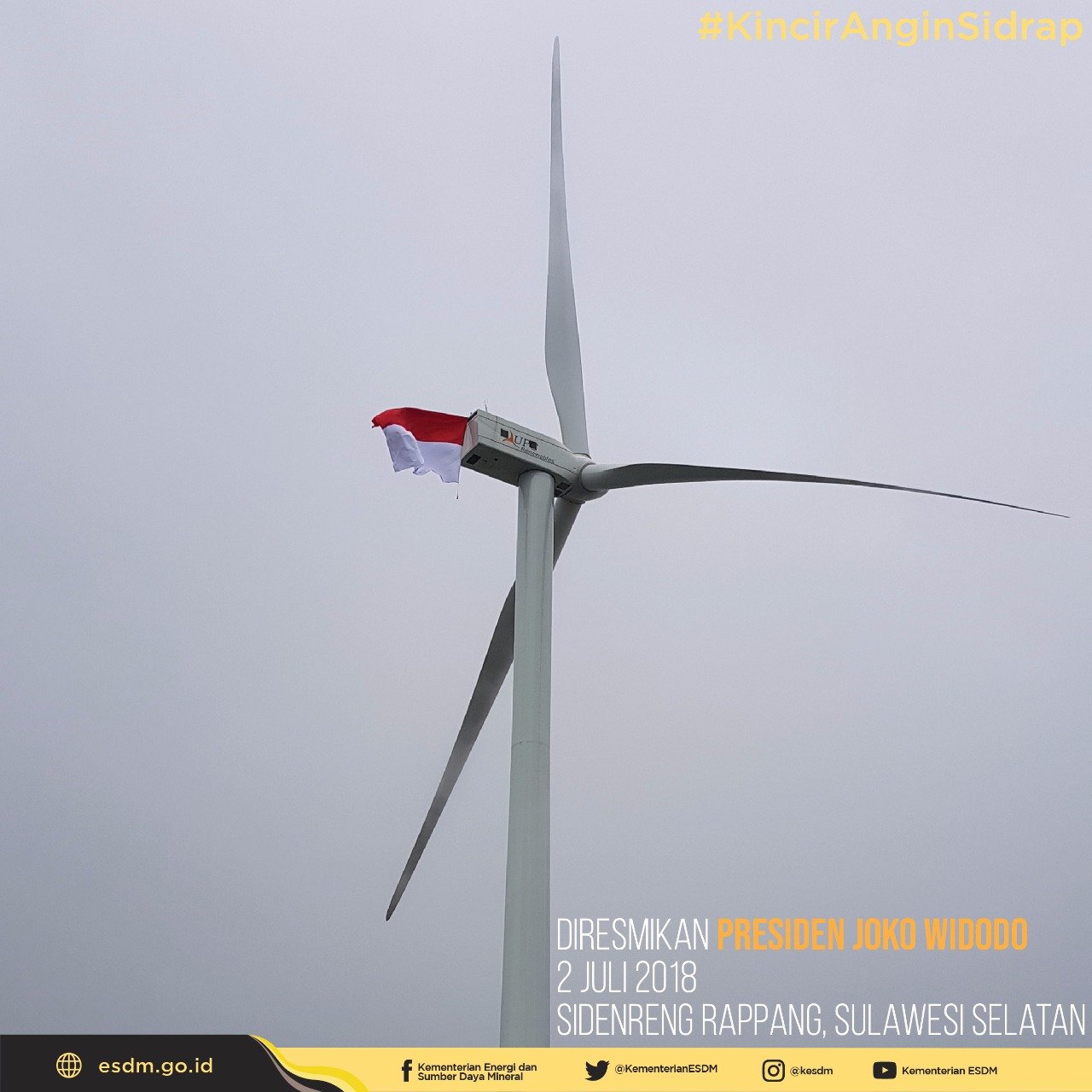 MargoPost.com | SIDENRENG RAPPANG – Presiden Republik Indonesia Joko Widodo (Jokowi) hari ini, Senin (2/7) meresmikan Pembangkit Listrik Tenaga Bayu (PLTB) Sidenreng Rappang (Sidrap) berkapasitas 75 Megawatt (MW) di Kecamatan Watangpulu, Kabupaten Sidenreng Rappang, Provinsi Sulawesi Selatan.