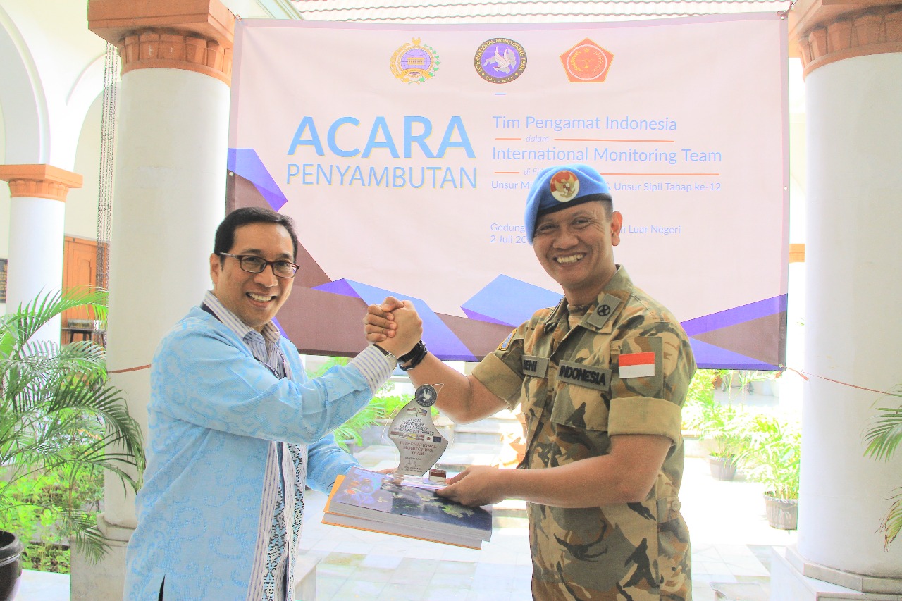 MargoPost.com | Jakarta – Kementerian Luar Negeri RI melaksanakan Penyambutan 9 (sembilan) personil Tim Pengamat Indonesia (TPI) dalam International Monitoring Team (IMT) yang telah menyelesaikan masa tugasnya di Filipina Selatan sejak Juli 2017 hingga Juni 2018, di gedung Garuda, Pejambon, (2/7/2018).