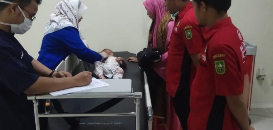 Tim PSC 119 membawa pasien ke RSUD Arifin Ahmad untuk segera mendapat penanganan. Pasien mendapat pemeriksaan kesehatan, nebulizer dan cek darah di laboratorium. Hasil pemeriksaan dokter spesialis anak, pasien menderita ISPA dan dianjurkan menjalani rawat jalan. Setelah mendapat pengobatan, pasien diantar pulang ke rumah dengan selamat.