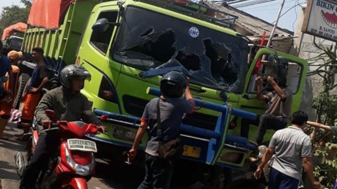 Lantaran hal itu, sejumlah warga melampiaskan kekesalan dengan melemparkan batu besar dan merusak kaca truk yang melindas warga hingga tewas, dan merembet ke sejumlah truk lainnya yang melintas.//aktual/mp,ratu