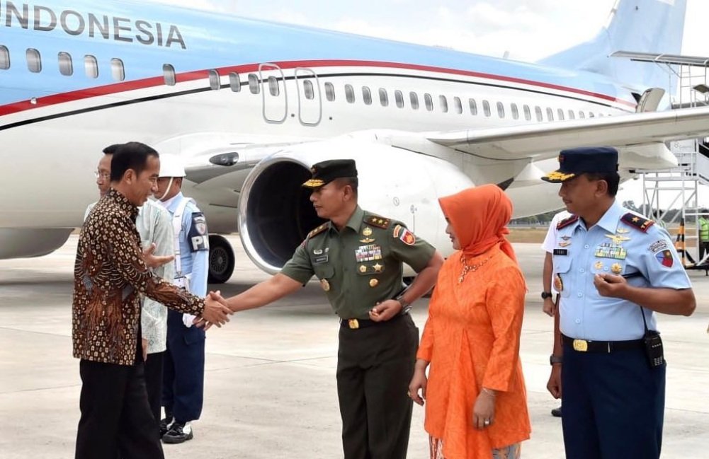Usai menempuh penerbangan selama kurang lebih satu jam, Presiden dan Ibu Iriana tiba di Pangkalan TNI AU Adisutjipto, Provinsi DIY pukul 13.30 WIB.