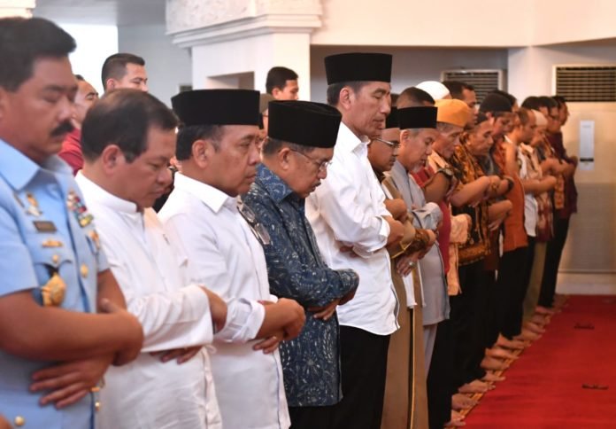 MARGOPOST.COM | JAKARTA – Setelah melaksanakan ibadah Salat Jumat, Presiden Joko Widodo dan Wakil Presiden Jusuf Kalla melaksanakan Salat Gaib di Masjid Baiturrahim, Istana Kepresidenan Jakarta, Jumat, 10 Agustus 2018. Salat gaib tersebut ditujukan untuk mendoakan korban gempa di Lombok, Nusa Tenggara Barat.