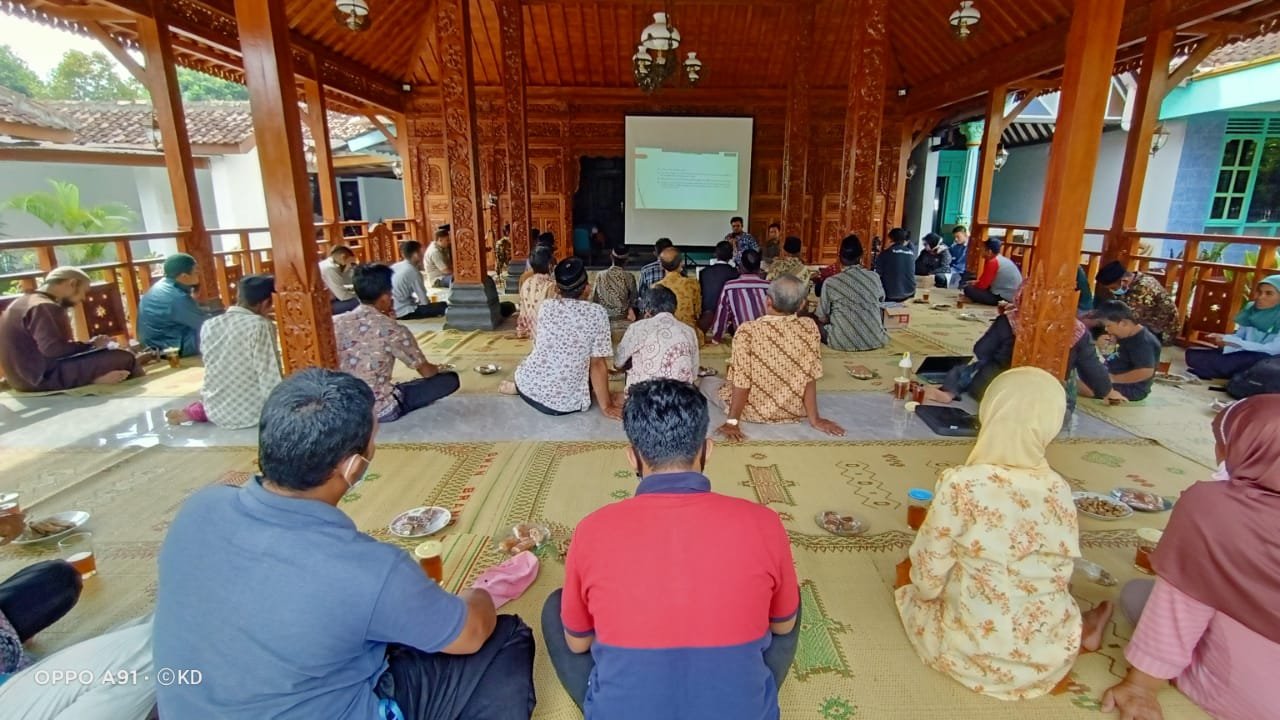 Kegiatan Program Pinter Bareng PPKDY dilaksanakan di Joglo Jodipati, Desa Wedomartani, Kecamatan Ngemplak, Kabupaten Sleman, DIY; yang dihadiri oleh peternak kambing, domba, dan sapi se-wilayah DIY. Tentunya tidak ketinggalan pada kegiatan ini hadir para narasumber yang berasal dari berbagai profesi dan praktisi, antara lain drh. Waryoto membawakan materi “Langkah Taktis yang Harus Dilakukan Peternak Menghadapi Ternak Terdampak PMK”, selanjutnya drh. Imam Abror menyajikan materi “Langkah Strategi Peternak Disaat Tenaga Kesehatan Hewan Terbatas”, dan terakhir drh. Indra Rachman menyuguhkan materi “Kesiapan Industri Obat Hewan Menghadapi Outbreak PMK”. Pada kesempatan ini juga hadir undangan dan sesepuh peternak kambing-domba Kabupaten Sleman dan atau Yogyakarta, diantaranya Ketua Umum PPKDY Ketua dan Skretaris Koperasi PPKDY, Kepala Desa Wedomertani, Babinkantibmas Polsek Ngemplak, serta peternak kambing, domba, dan sapi se-DIY. Sedangkan dari BBPKH Cinagara diwakili widyaiswara yaitu drh. Nafrina Lanniari, M.Si. dan Dayat Hermawan, S.Pt., M.Si., serta fungsional Pranata Komputer, Bayu Ramadhani, A.Md. Kegiatan yang berlangsung santai tapi serius ini dilaksanakan secara offline (luar jaringan, atau bertatap muka langsung) dan online (dalam jaringan) dilaksanakan secara online menggunakan media pembelajaran video converence melalui aplikasi zoom meeting, dan juga disiarkan secara langsung (live streaming) melalui media youtube BBPKH Cinagara. Peserta baik yang ikut offline maupun online, sangat antusias, hal ini dapat dilihat dari interaksi pada kolom chat aplikasi zoom dan youtube, dan beberapa pertanyaan secara langsung ke masing-masing narasumber dan ditanggapi secara lugas sesuai jenis pertanyaannya.