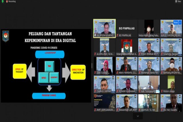 “Tantangan yang dihadapi oleh para pemimpin di era digital saat ini yakni, pertama, lack of leadership commitment. Kedua limited budget, dan lack of enforcement. Ketiga hard to fulfill the coordination among stakeholders. Keempat technical issue (electricity, IT equipment, internet connection). Dan kelima human resources issues (competency and integrity), sehingga dibutuhkan kepemimpinan strategis saat ini adalah kemampuan memimpin dan menavigasi menuju digital mindset, digital skill dan digital behavior. Sedangkan untuk pemimpin masa depan yang dibutuhkan kemampuan communicative, strong vision, digital literacy, adaptive, strategic thinking, innovative, risk taker and competitive adventage,” ujar Teguh.