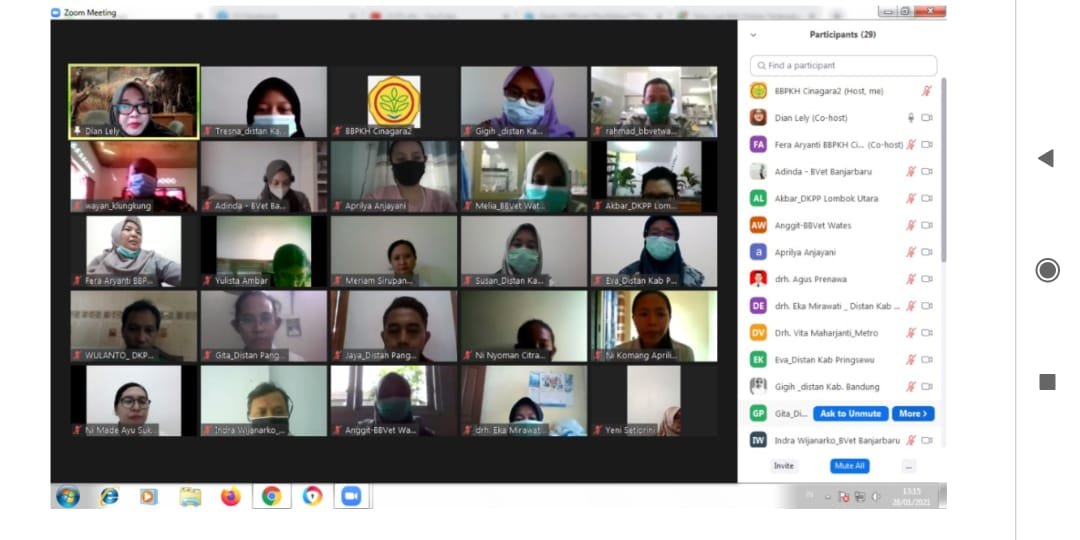 Saat ini telah terselenggara 1 angkatan pelatihan yang diselenggarakan tanggal 24 Januari 2021 sd. 14 Februari 2021 dengan jumlah peserta sebanyak 30 orang yang berasal dari UPT Direktorat Jenderal Peternakan dan Kesehatan Hewan seperti Balai Veteriner Banjarbaru, Balai Besar Veteriner Wates / Balai Besar Veteriner dan dari Dinas Kabupaten Klungkung, Lombok Utara, Jembrana, Karangasem, Solok, Solok Selatan, Pringsewu, Kota Metro, Kabupaten Bandung, dan Kabupaten Bogor. Pelatihan dilaksanakan selama 21 hari dengan jumlah jam pelajaran sebanyak 168 Jam Pelatihan (@ 45 menit). Metoda pembelajaran yang dipergunakan adalah metode pembelajaran jarak jauh (e-learning)/nonklasikal dan klasikal. Materi pelatihan e-learning diberikan melalui Mandiri Online, Penugasan Online dan Live chat. Sedangkan materi praktek dilakukan secara klasikal. Selama pelatihan dilaksanakan kunjungan lapang ke Balai Embrio Ternak cipelang dan secara virtual ke Balai Pengujian Mutu dan Sertifikasi Produk Hewan.