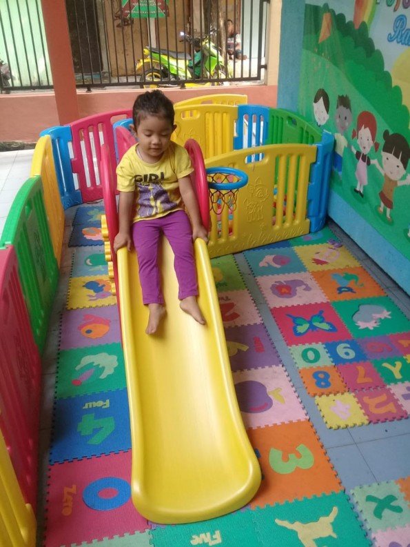“Pojok bermain tersebut dilengkapi karpet yang nyaman. Selain itu, dilengkapi berbagai mainan ramah anak, seperti perosotan, puzzle, balok-balok kayu, alat peraga dongeng, dan sejumlah mainan lainnya yang mengasah kemampuan berhitung,” jelasnya.